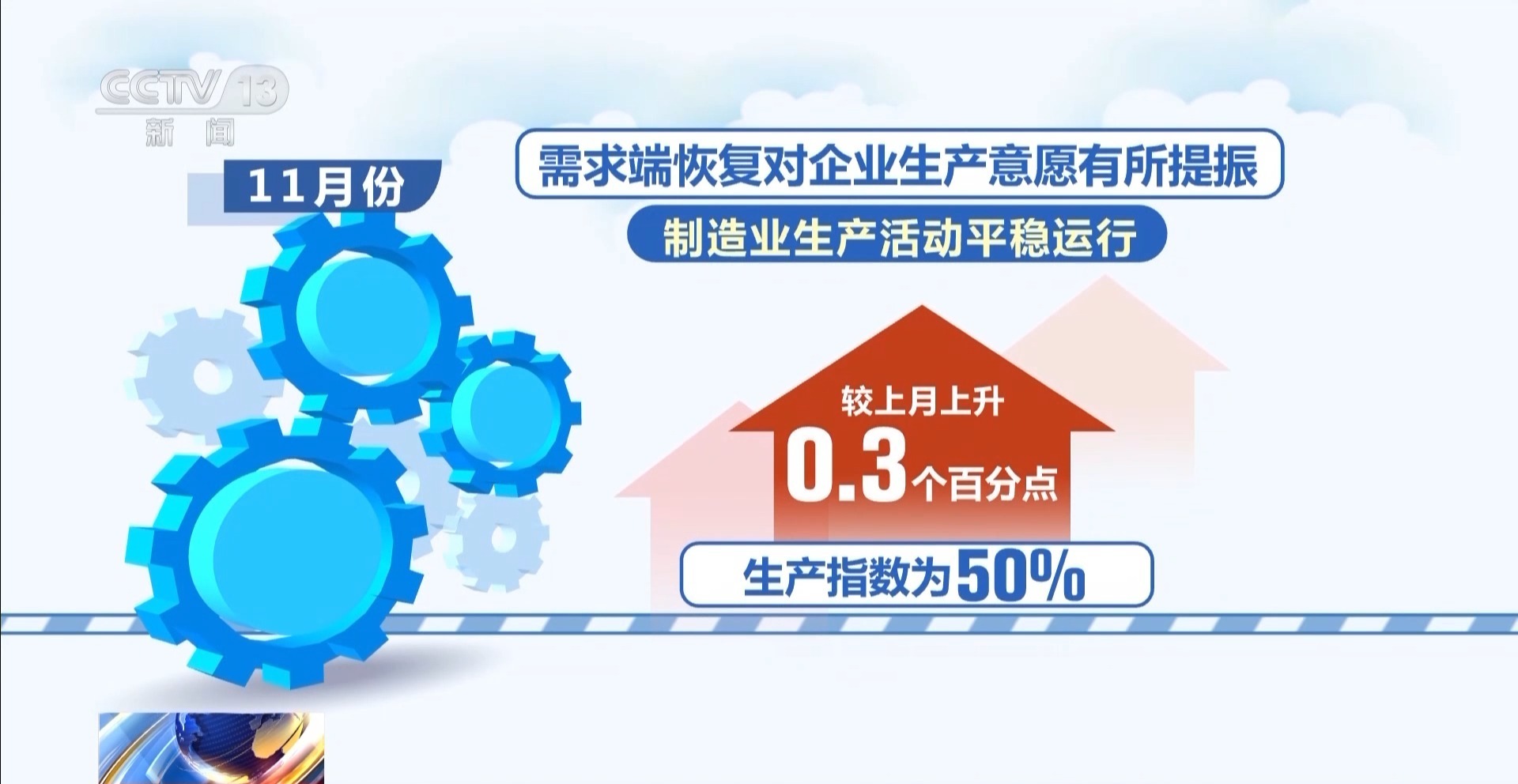 国家统计局服务业调查中心企业景气处处长 霍丽慧:11月份制造业PMI小幅回升,景气水平有所改善,产需两端有所改善,生产指数和新订单指数双双回升,其中生产指数是升至了临界点。